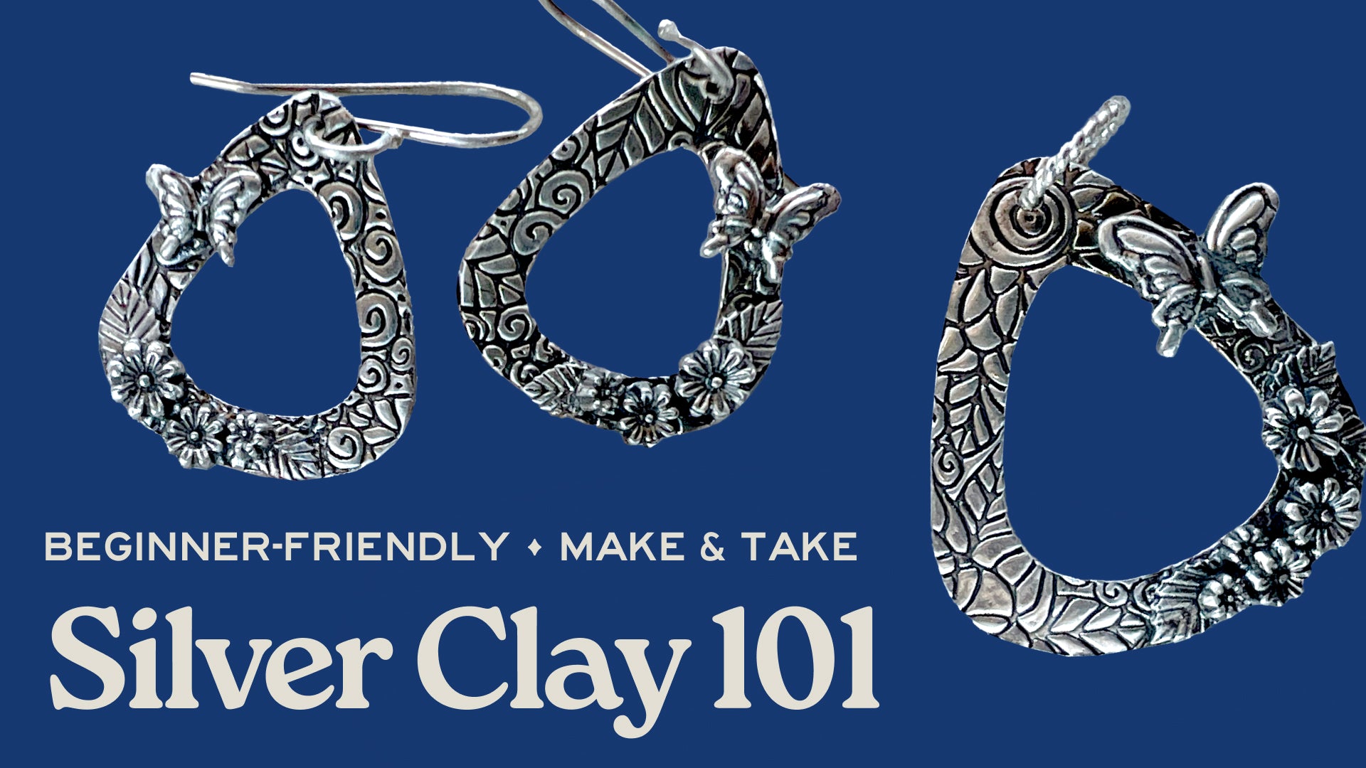 Have you ever wanted to learn to make silver charms, pendants, and earrings without all the fuss of other metalwork techniques? Well, come learn to work with silver clay! Learn how to apply textures and form metal clay to make unique jewelry. It’s fun!